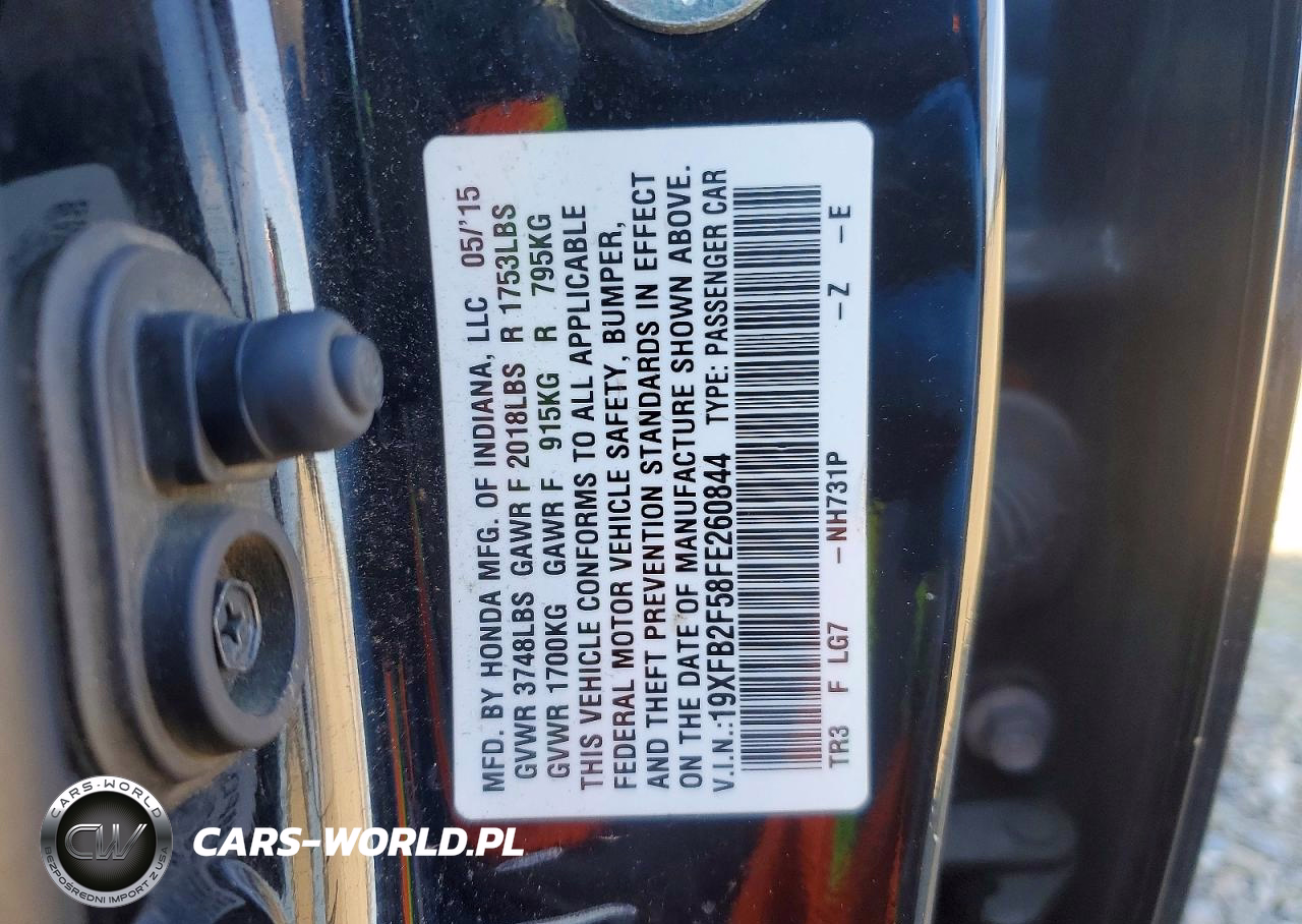 Copart Nr: C-41582666 VIN: 19XFB2F58FE260844 Port: Los Angeles, CA