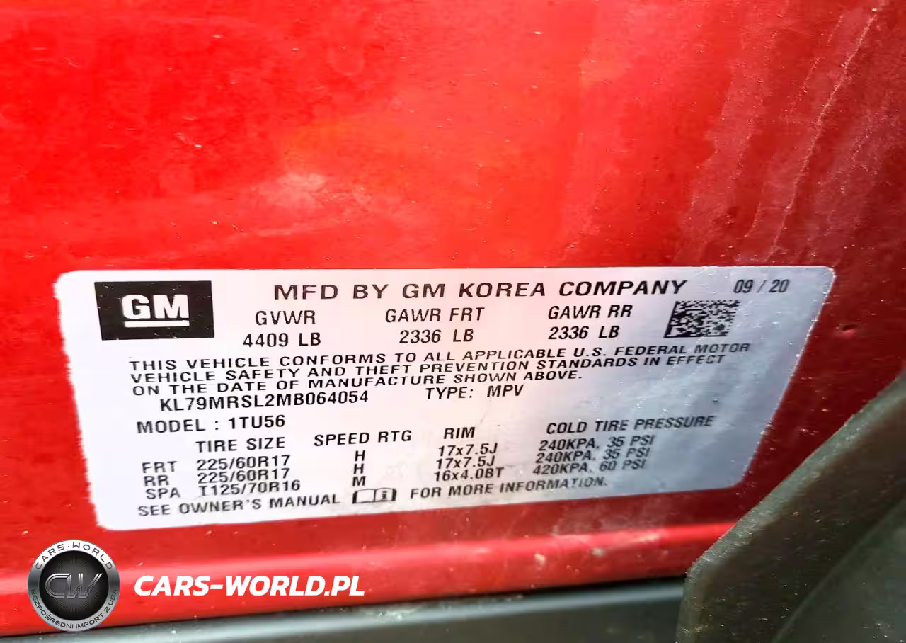 Copart Nr: C-41585456 VIN: KL79MRSL2MB064054 Port: Indianapolis, IN