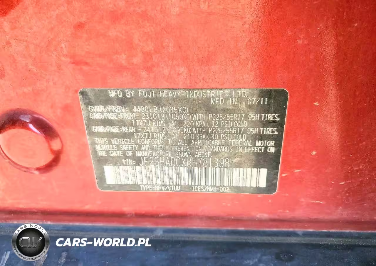 Copart Nr: C-41592896 VIN: JF2SHADCXBH781398 Port: Indianapolis, IN