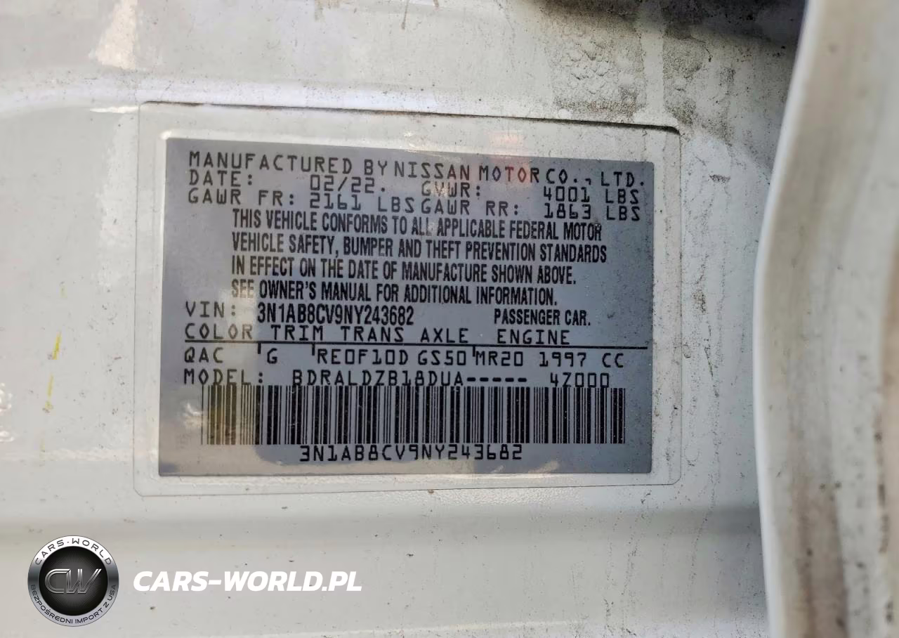 Copart Nr: C-41599966 VIN: 3N1AB8CV9NY243682 Port: Elizabeth, NJ