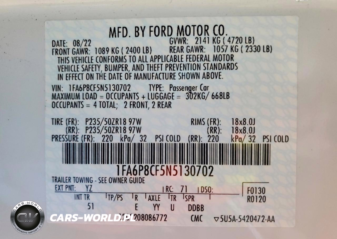 Copart Nr: C-41620246 VIN: 1FA6P8CF5N5130702 Port: Los Angeles, CA