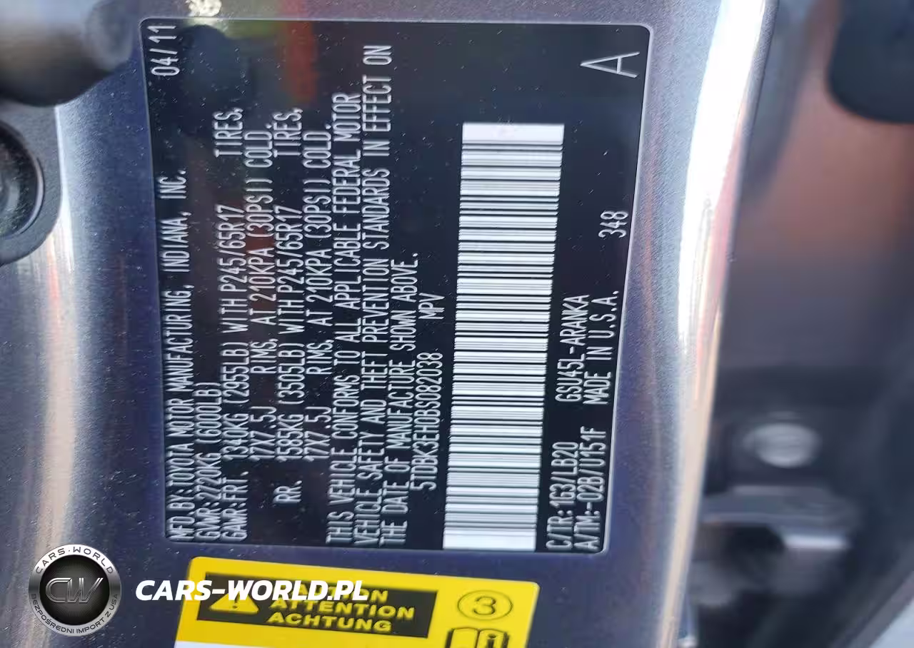 Copart Nr: C-41620626 VIN: 5TDBK3EH0BS082038 Port: Los Angeles, CA