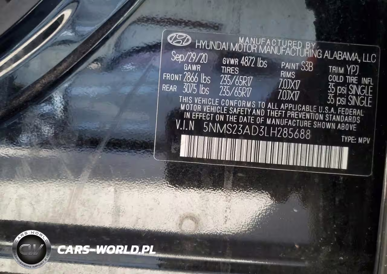 Copart Nr: C-41621576 VIN: 5NMS23AD3LH285688 Port: Savannah, GA