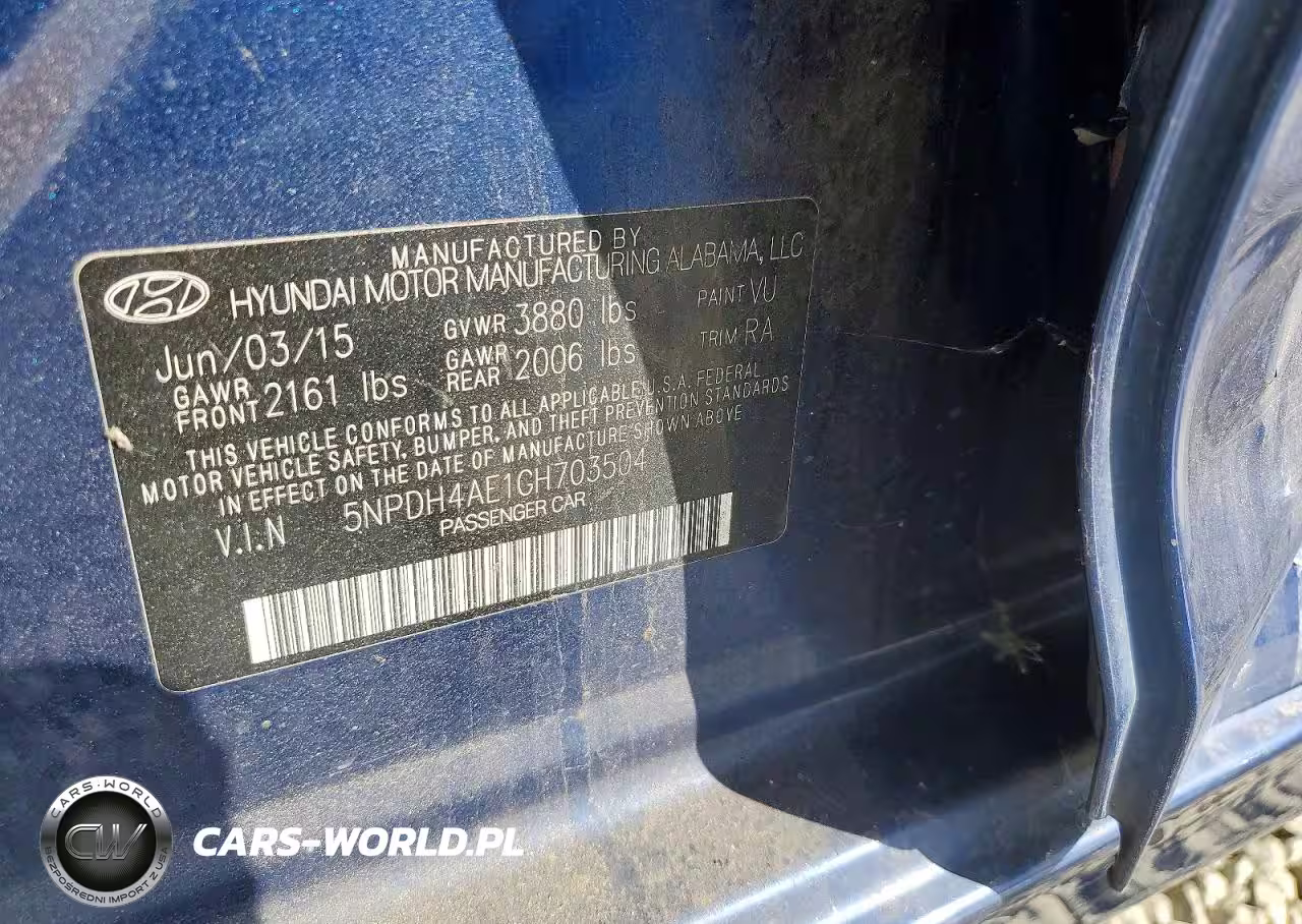 Copart Nr: C-41621666 VIN: 5NPDH4AE1GH703504 Port: Los Angeles, CA