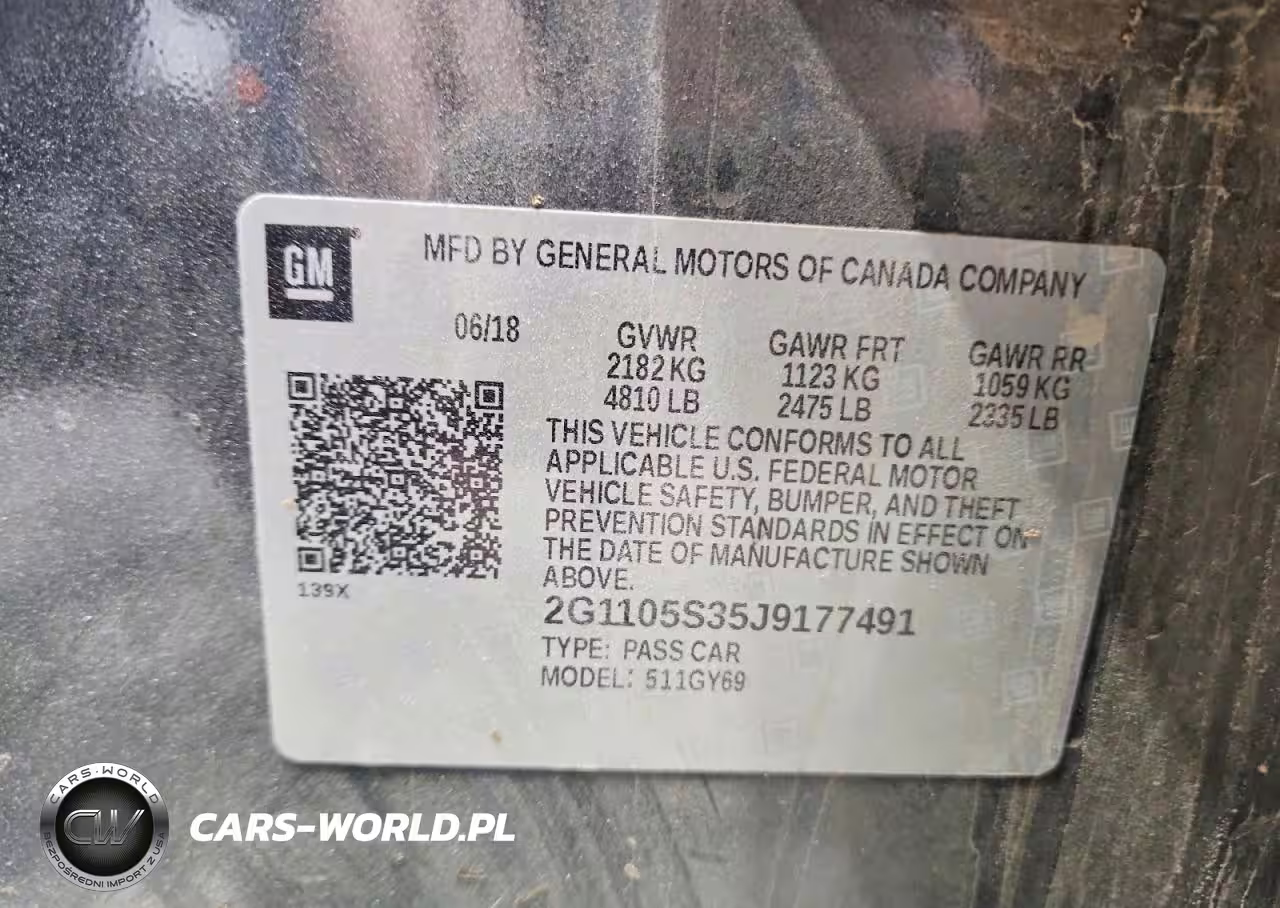 Copart Nr: C-41638856 VIN: 2G1105S35J9177491 Port: Indianapolis, IN