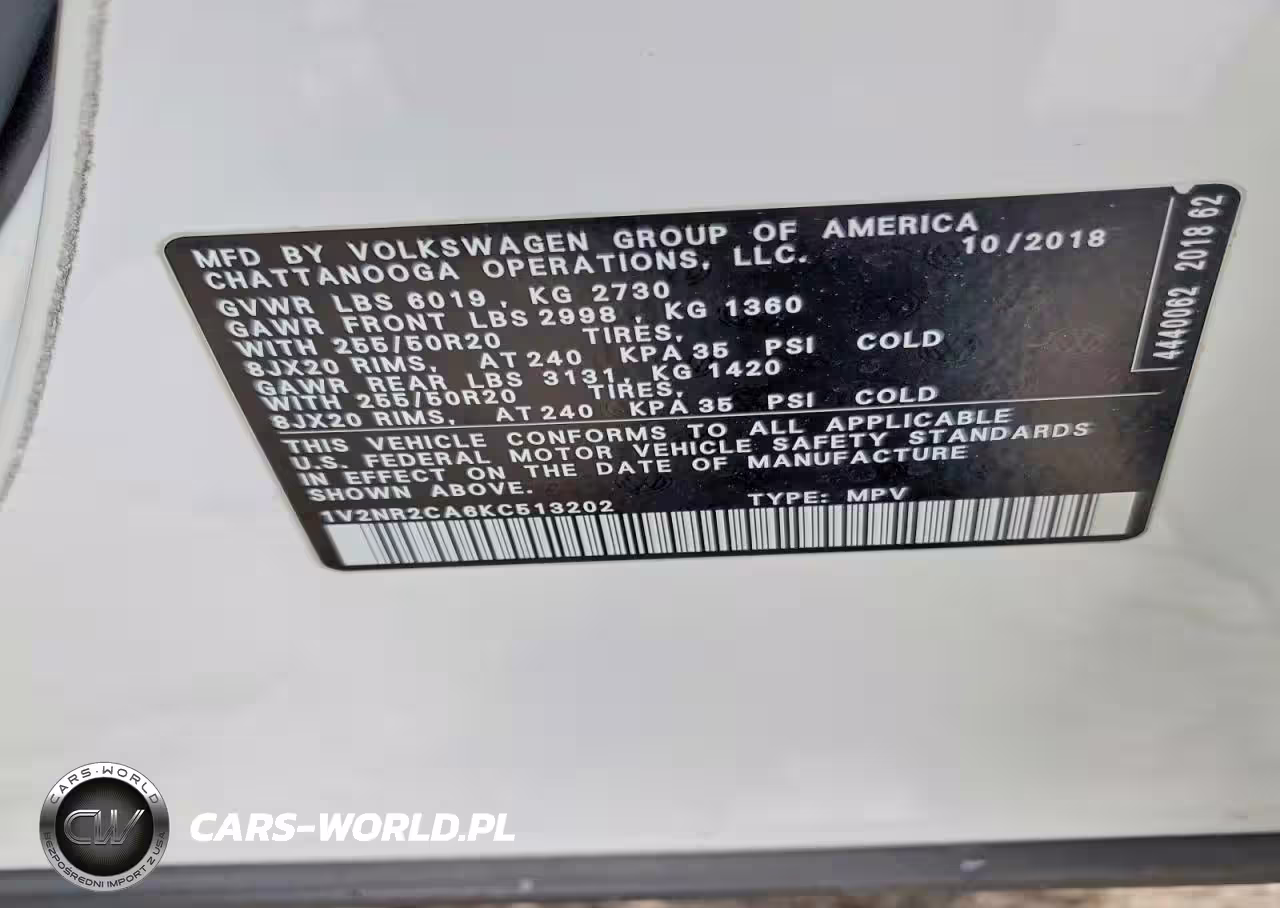 Copart Nr: C-41658226 VIN: 1V2NR2CA6KC513202 Port: Los Angeles, CA