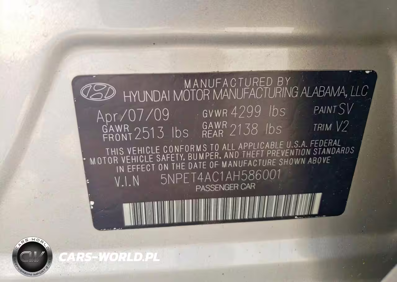 Copart Nr: C-41708896 VIN: 5NPET4AC1AH586001 Port: Elizabeth, NJ