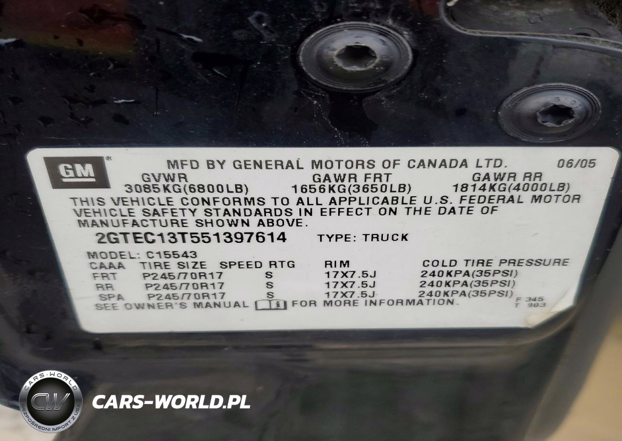 Copart Nr: C-41715066 VIN: 2GTEC13T551397614 Port: Indianapolis, IN