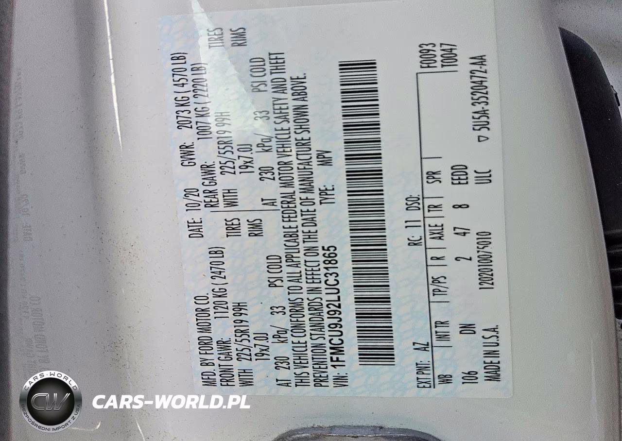 Copart Nr: C-41715146 VIN: 1FMCU9J92LUC31865 Port: Elizabeth, NJ