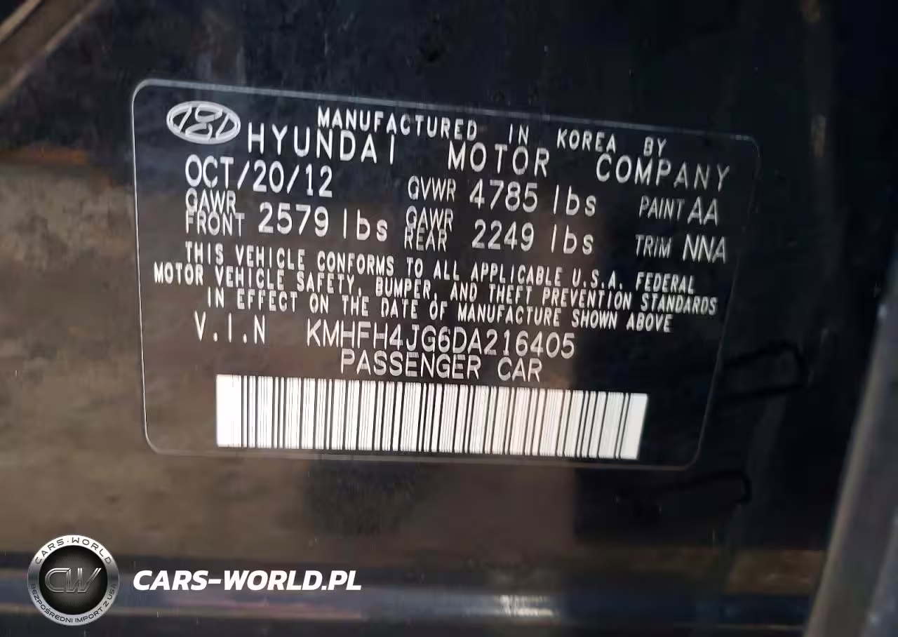 Copart Nr: C-41726106 VIN: KMHFH4JG6DA216405 Port: Elizabeth, NJ