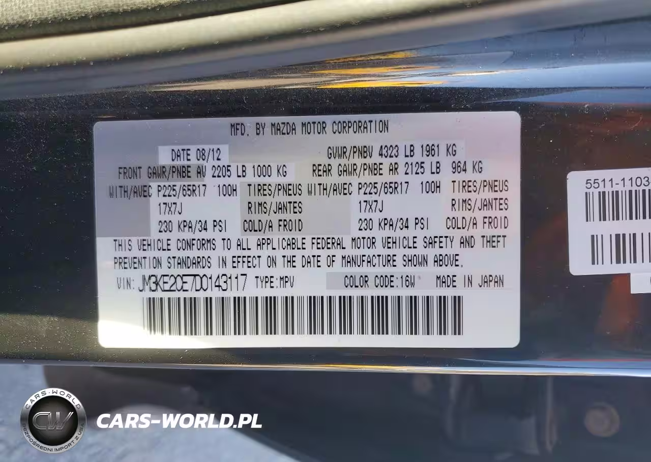 Copart Nr: C-41727406 VIN: JM3KE2CE7D0143117 Port: Los Angeles, CA