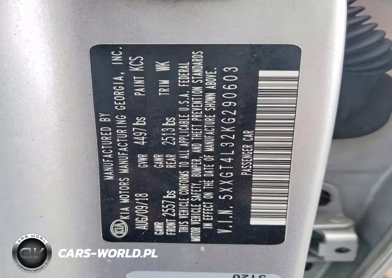 Copart Nr: C-41762226 VIN: 5XXGT4L32KG290603 Port: Indianapolis, IN