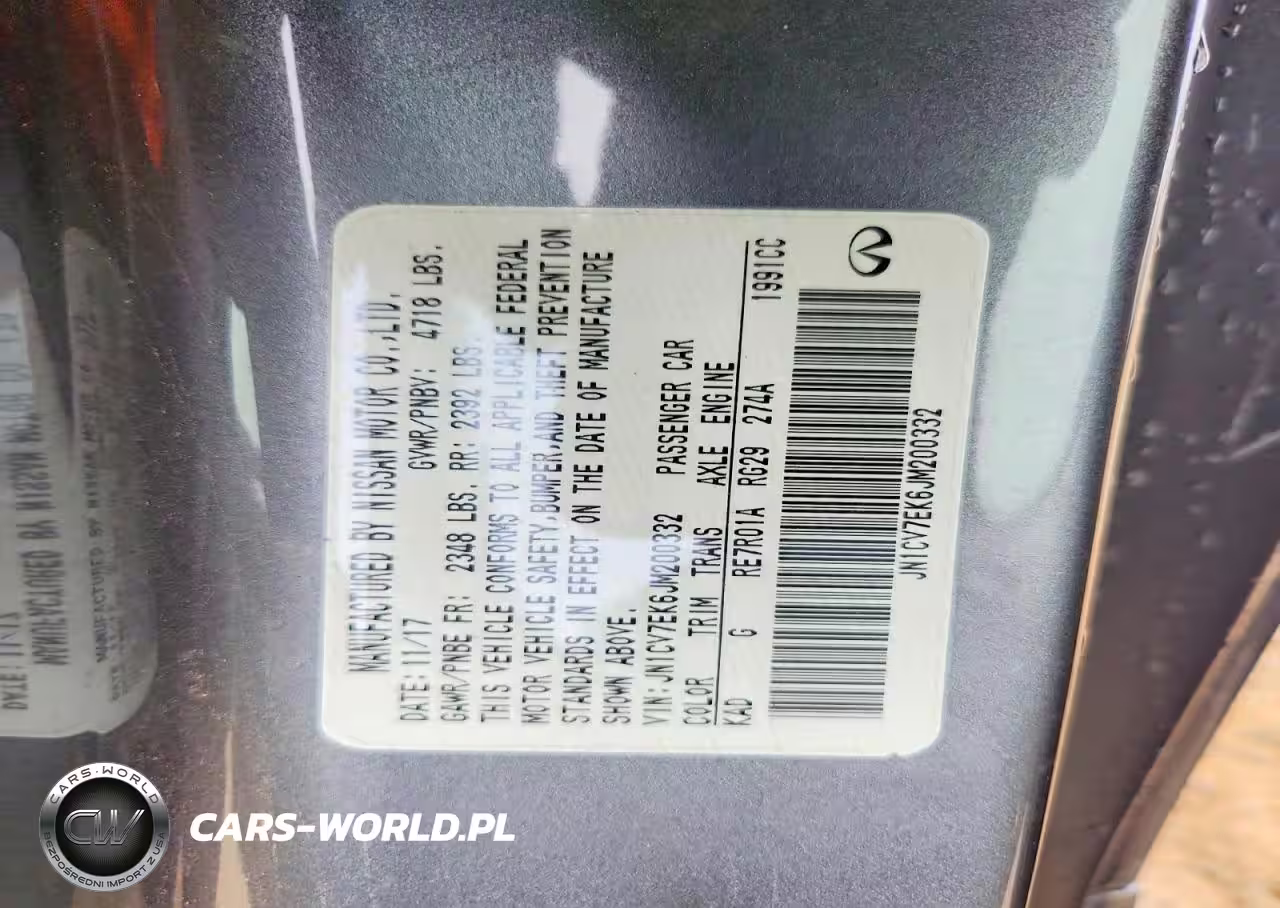 Copart Nr: C-41781636 VIN: JN1CV7EK6JM200332 Port: Savannah, GA