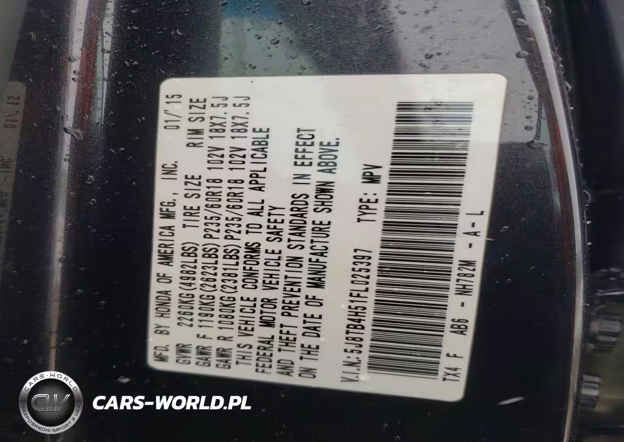 Copart Nr: C-41783876 VIN: 5J8TB4H51FL025397 Port: Houston, TX