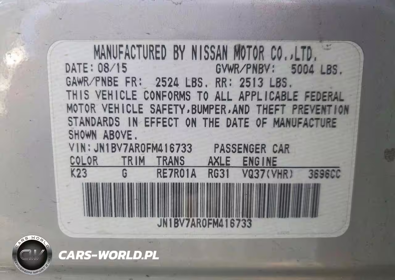Copart Nr: C-41788246 VIN: JN1BV7AR0FM416733 Port: Indianapolis, IN