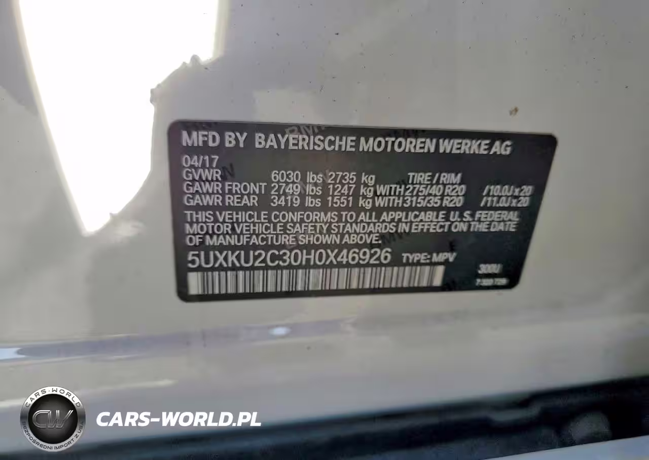 Copart Nr: C-41797166 VIN: 5UXKU2C30H0X46926 Port: Los Angeles, CA