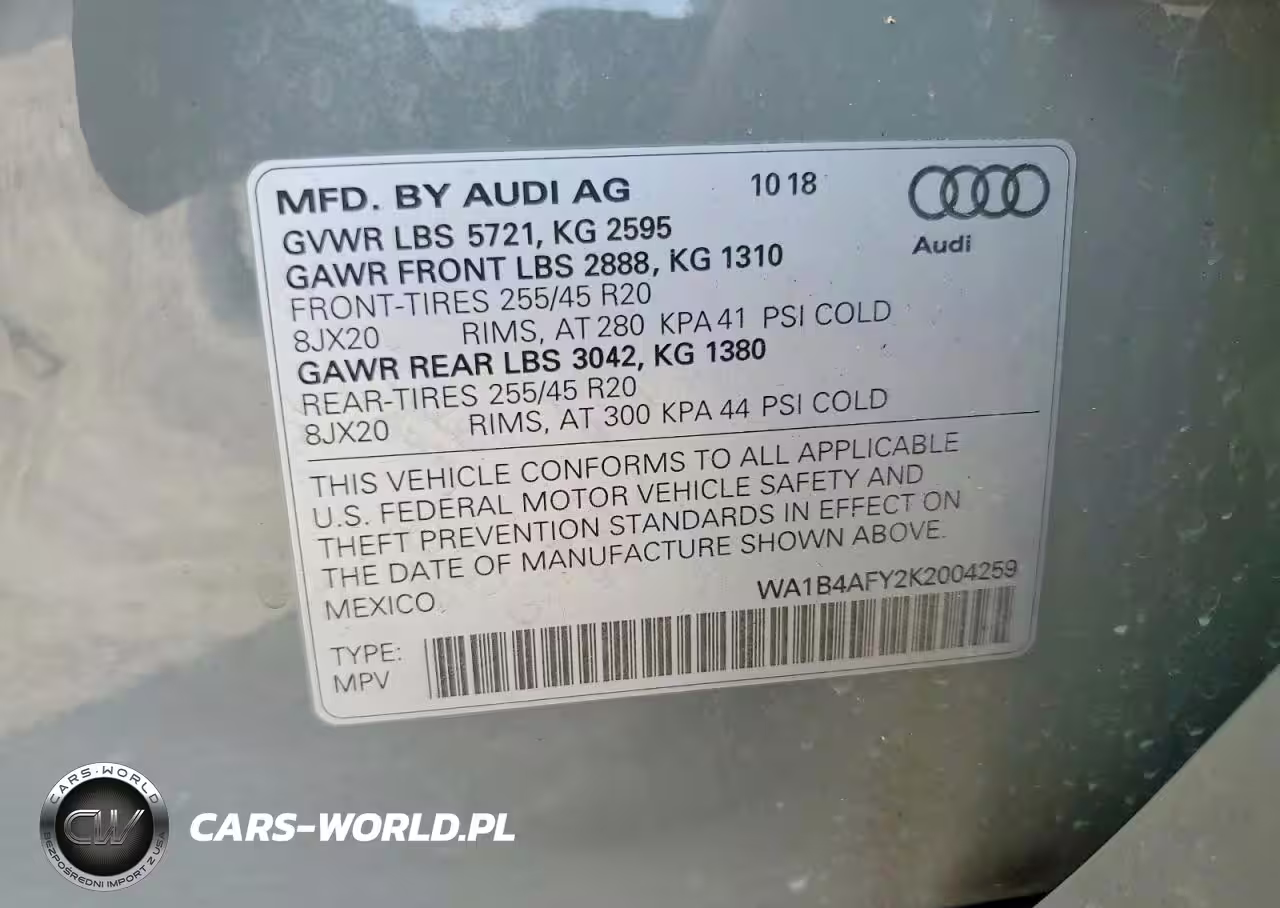 Copart Nr: C-41798076 VIN: WA1B4AFY2K2004259 Port: Houston, TX