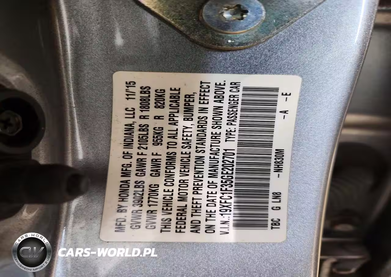 Copart Nr: C-41810726 VIN: 19XFC1F35GE202701 Port: Elizabeth, NJ