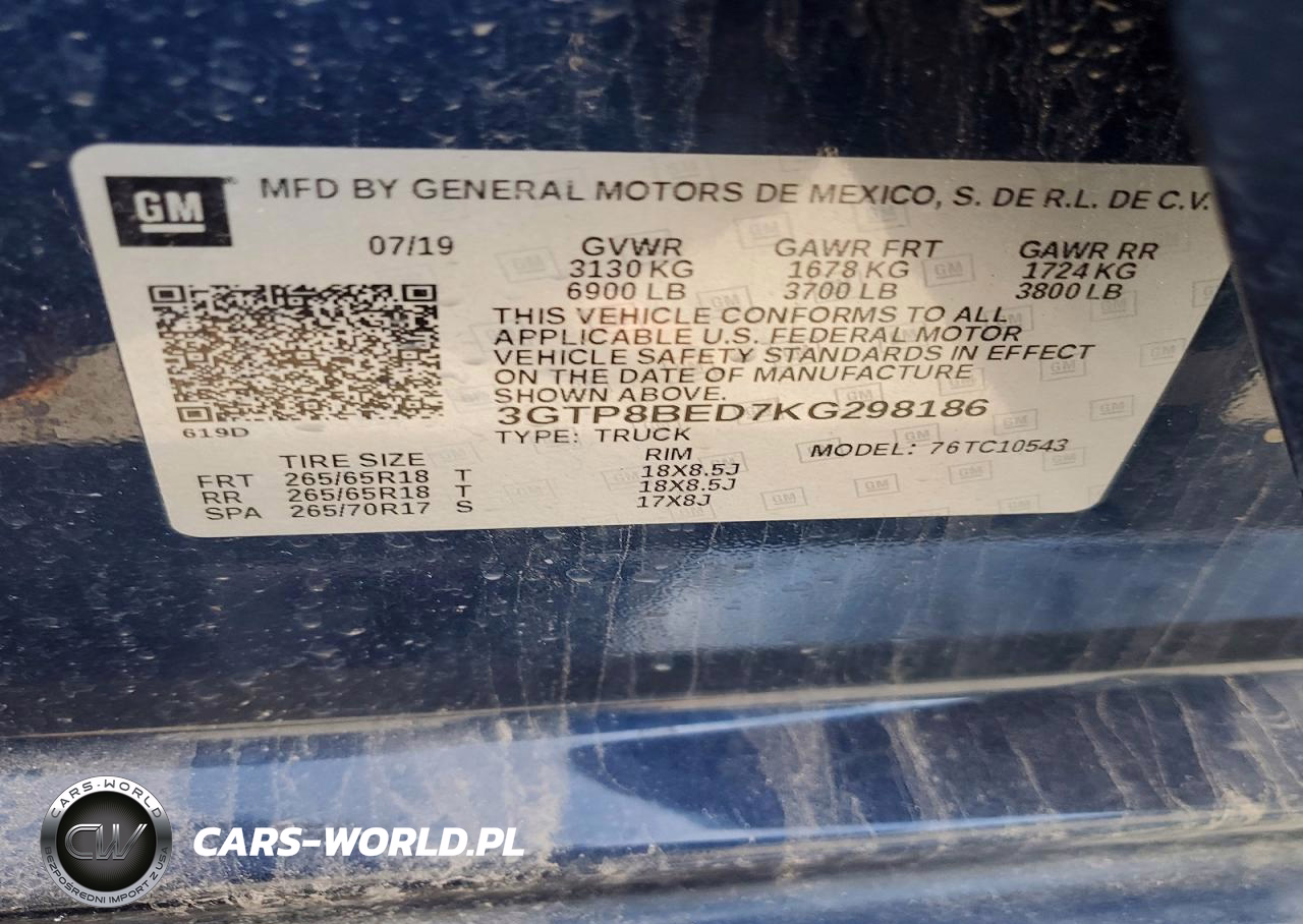 Copart Nr: C-41821746 VIN: 3GTP8BED7KG298186 Port: Los Angeles, CA