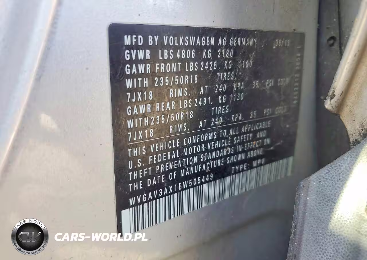 Copart Nr: C-41831236 VIN: WVGAV3AX1EW505449 Port: Los Angeles, CA