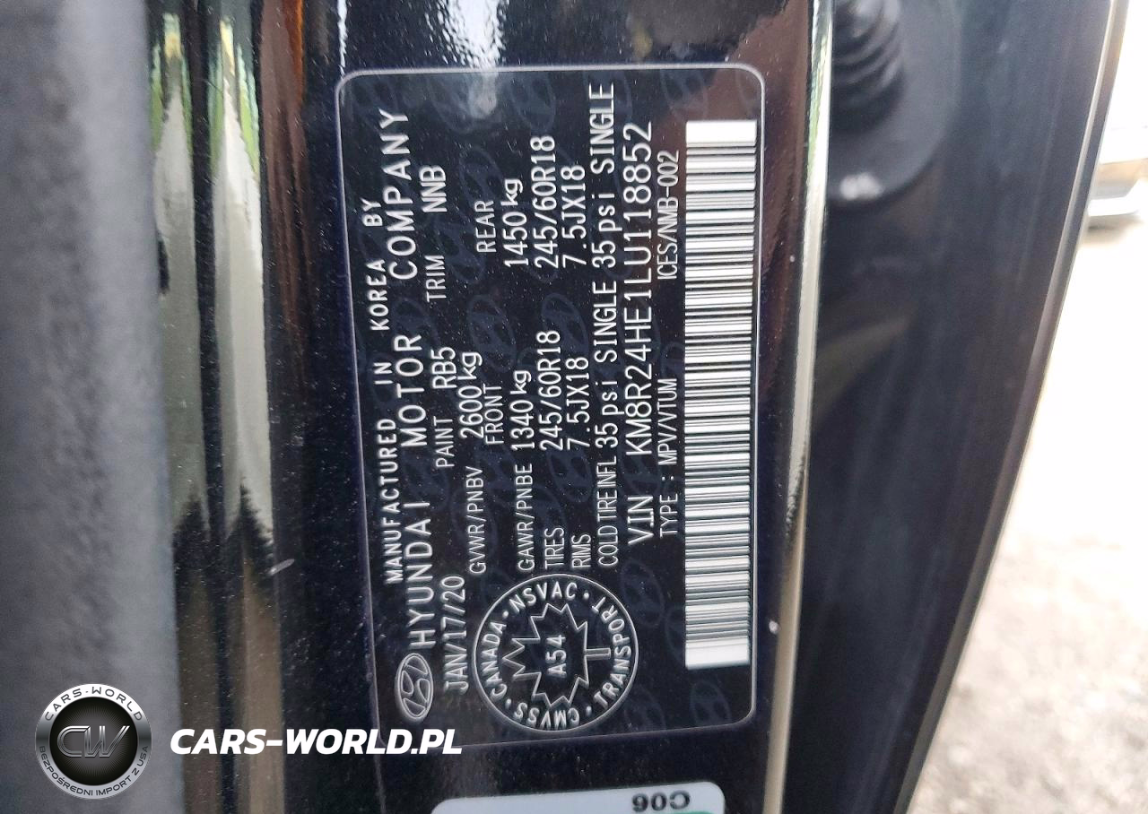 Copart Nr: C-41836196 VIN: KM8R24HE1LU118852 Port: Indianapolis, IN