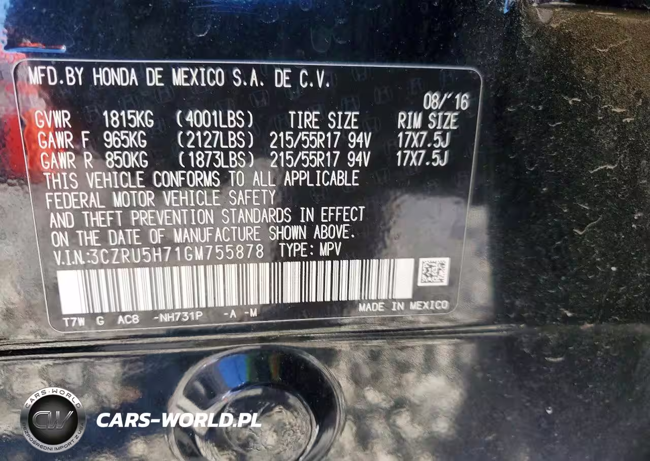 Copart Nr: C-41846636 VIN: 3CZRU5H71GM755878 Port: Savannah, GA