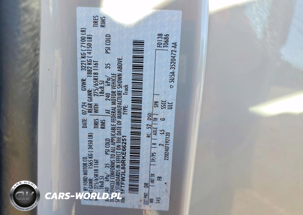 Copart Nr: C-41862486 VIN: 1FTFW3L80RKE66251 Port: Houston, TX