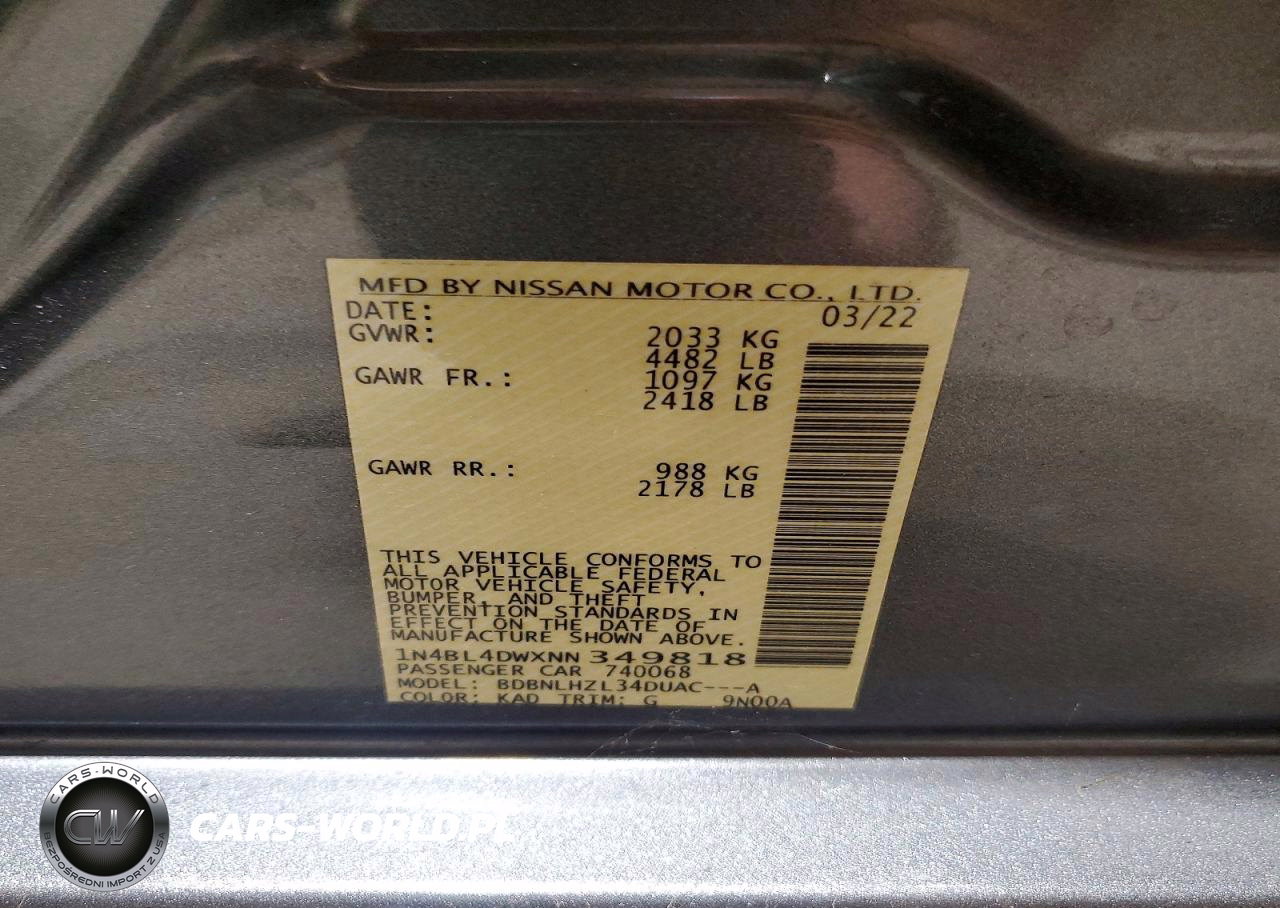 Copart Nr: C-41868486 VIN: 1N4BL4DWXNN349818 Port: Indianapolis, IN