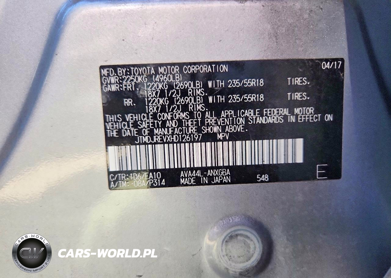Copart Nr: C-41938476 VIN: JTMDJREVXHD126197 Port: Los Angeles, CA