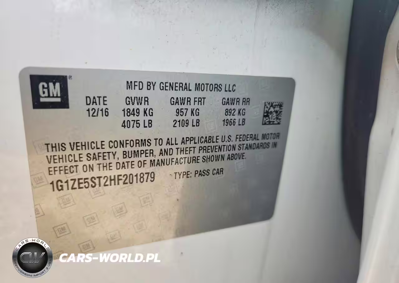 Copart Nr: C-41954556 VIN: 1G1ZE5ST2HF201879 Port: Savannah, GA