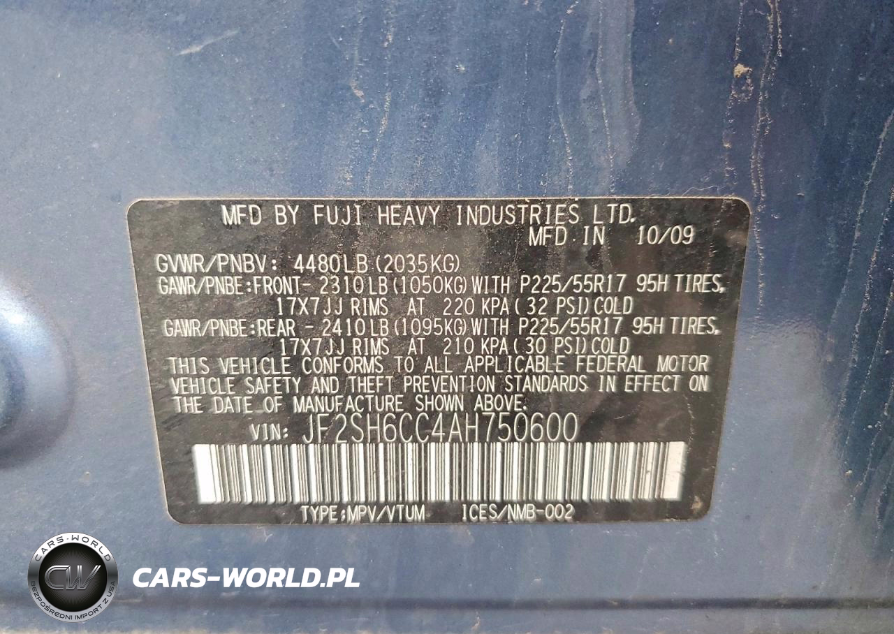 Copart Nr: C-41957026 VIN: JF2SH6CC4AH750600 Port: Elizabeth, NJ