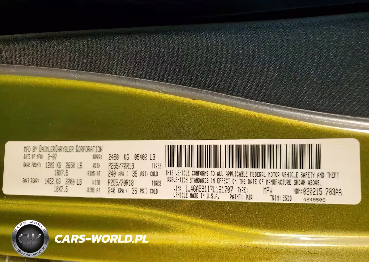 Copart Nr: C-41959956 VIN: 1J4GA59117L161707 Port: Los Angeles, CA