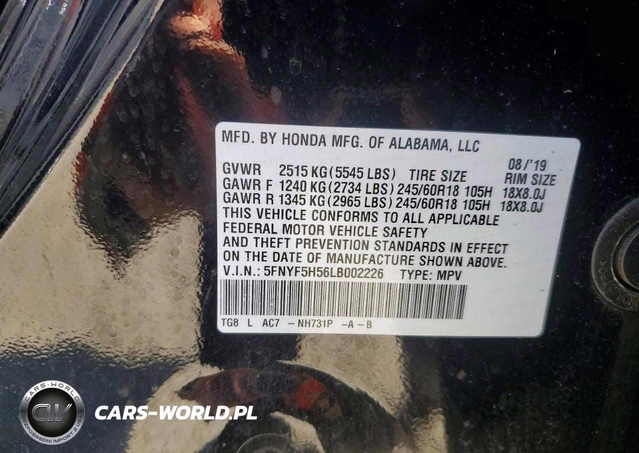Copart Nr: C-41960816 VIN: 5FNYF5H56LB002226 Port: Los Angeles, CA