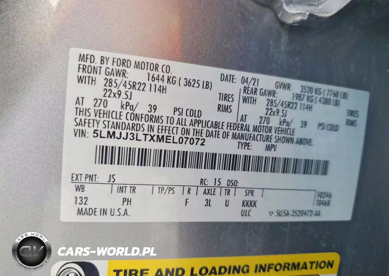 Copart Nr: C-41976326 VIN: 5LMJJ3LTXMEL07072 Port: Indianapolis, IN