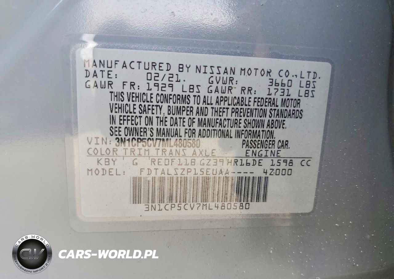 Copart Nr: C-41988496 VIN: 3N1CP5CV7ML480580 Port: Elizabeth, NJ