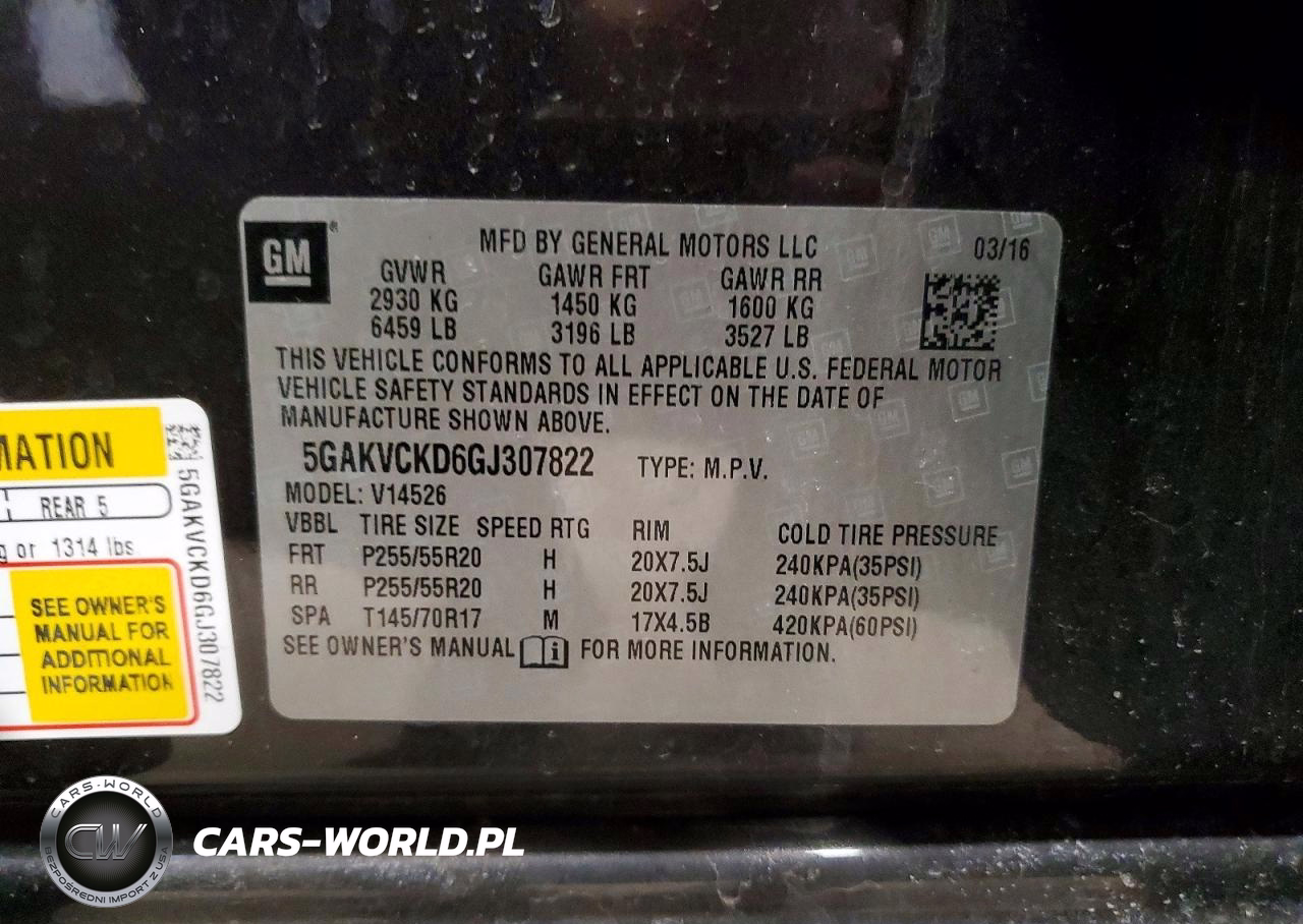 Copart Nr: C-42012146 VIN: 5GAKVCKD6GJ307822 Port: Indianapolis, IN