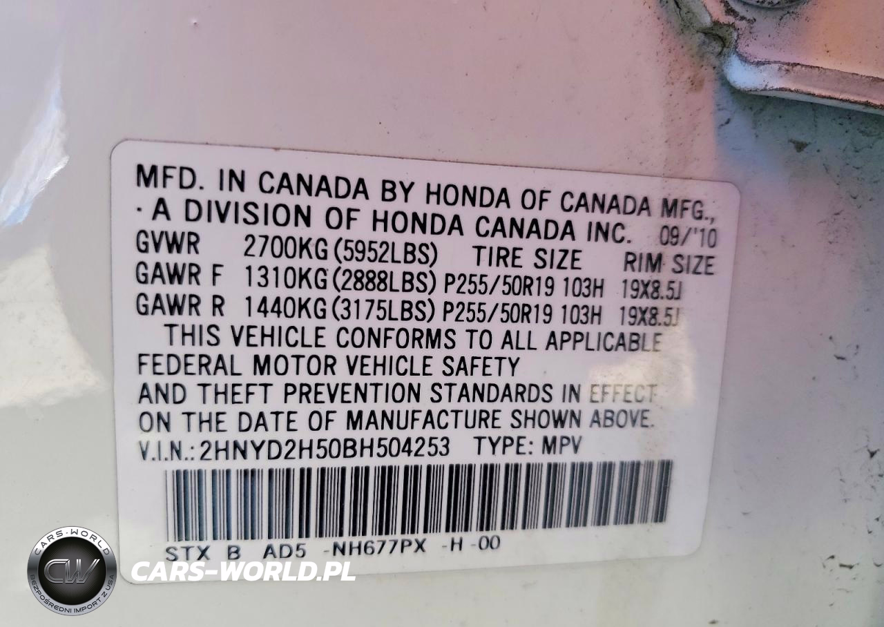 Copart Nr: C-42044666 VIN: 2HNYD2H50BH504253 Port: Elizabeth, NJ