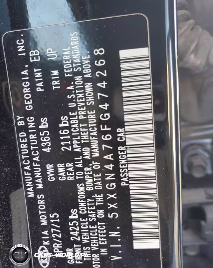 Copart Nr: C-42045495 VIN: 5XXGN4A76FG474268 Port: Savannah, GA