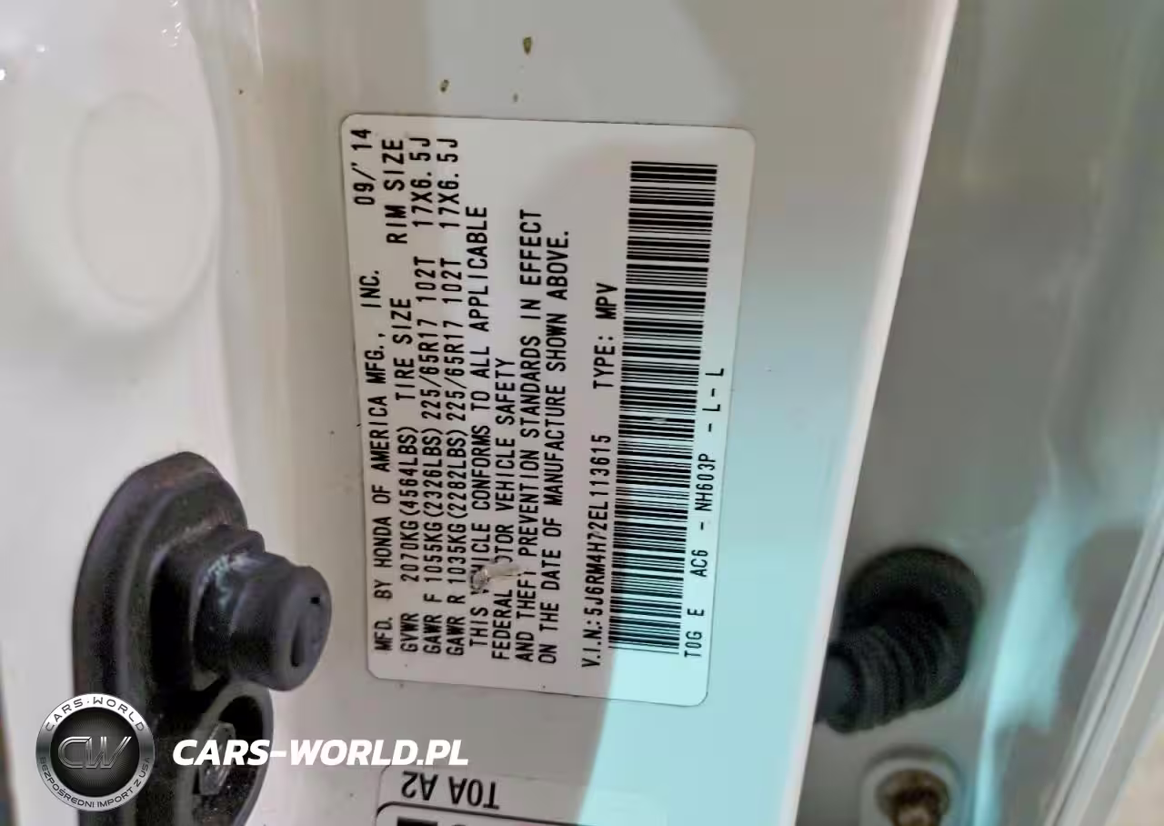 Copart Nr: C-42055616 VIN: 5J6RM4H72EL113615 Port: Indianapolis, IN