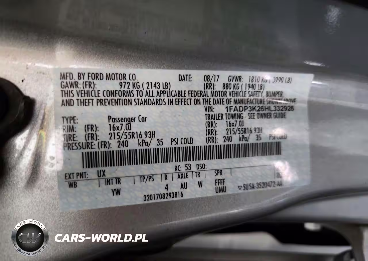 Copart Nr: C-42064126 VIN: 1FADP3K26HL332926 Port: Indianapolis, IN