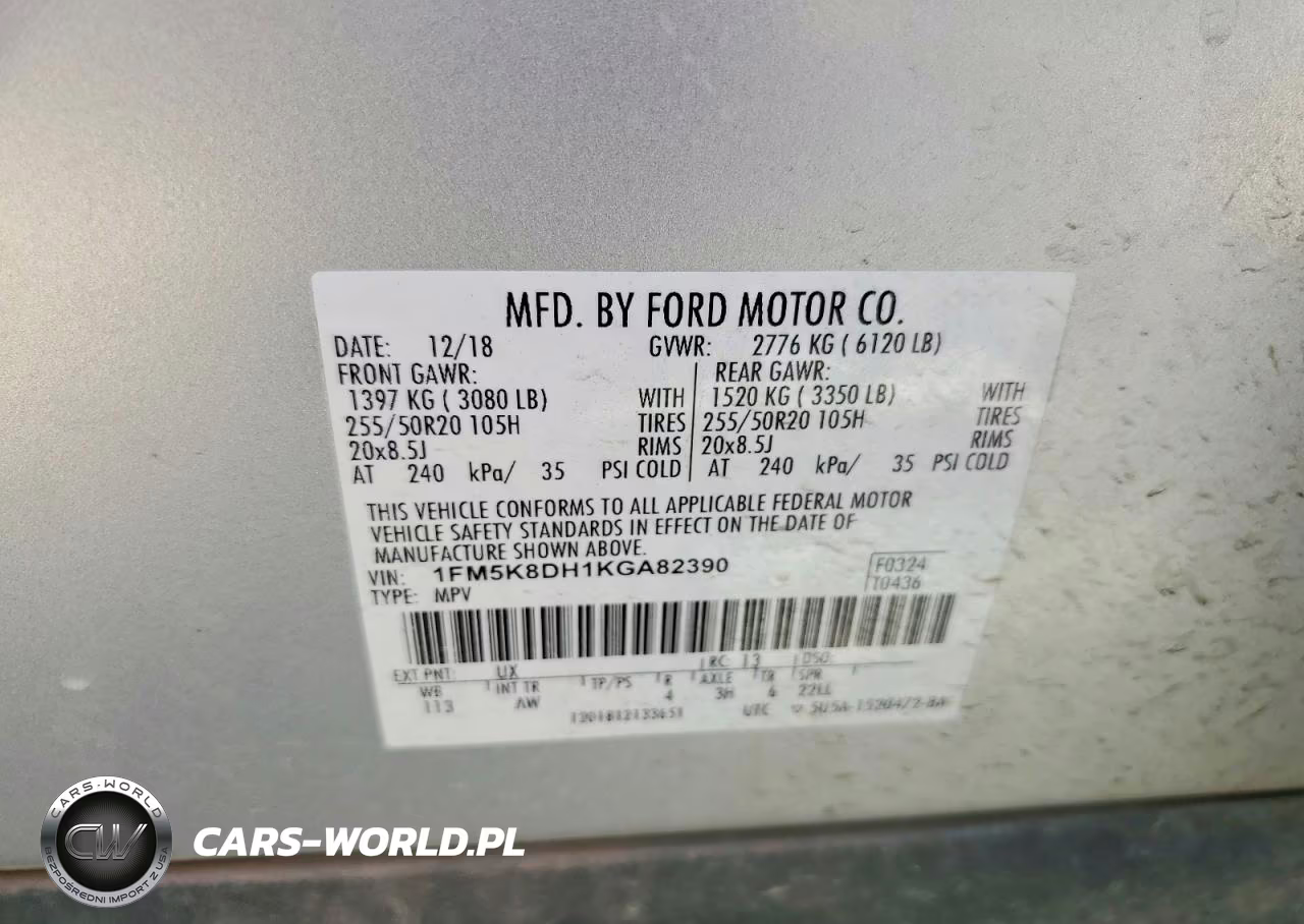 Copart Nr: C-42071666 VIN: 1FM5K8DH1KGA82390 Port: Houston, TX