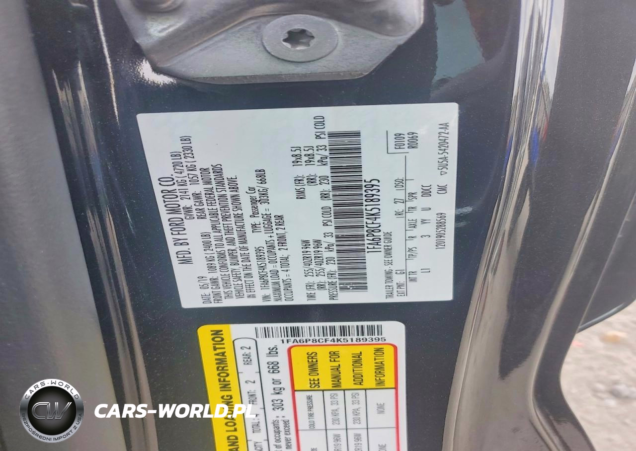 Copart Nr: C-45452686 VIN: 1FA6P8CF4K5189395 Port: Elizabeth, NJ