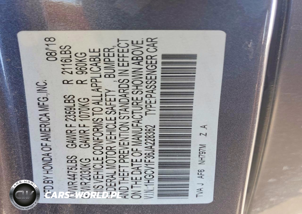 Copart Nr: C-45462056 VIN: 1HGCV1F36JA228362 Port: Los Angeles, CA