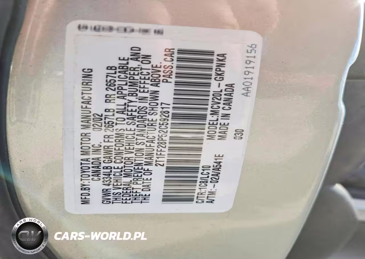Copart Nr: C-45465396 VIN: 2T1FF28P52C592817 Port: Indianapolis, IN