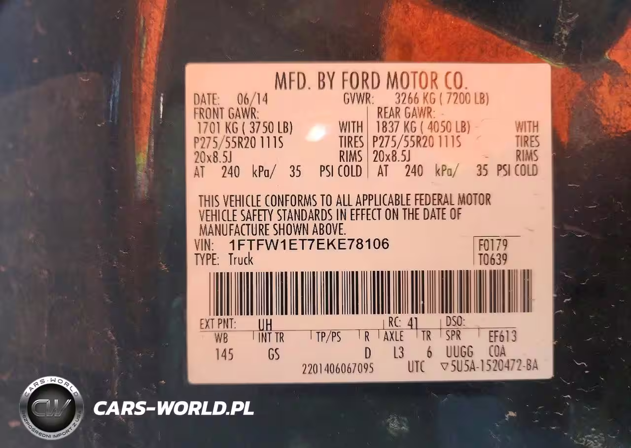Copart Nr: C-45467866 VIN: 1FTFW1ET7EKE78106 Port: Indianapolis, IN