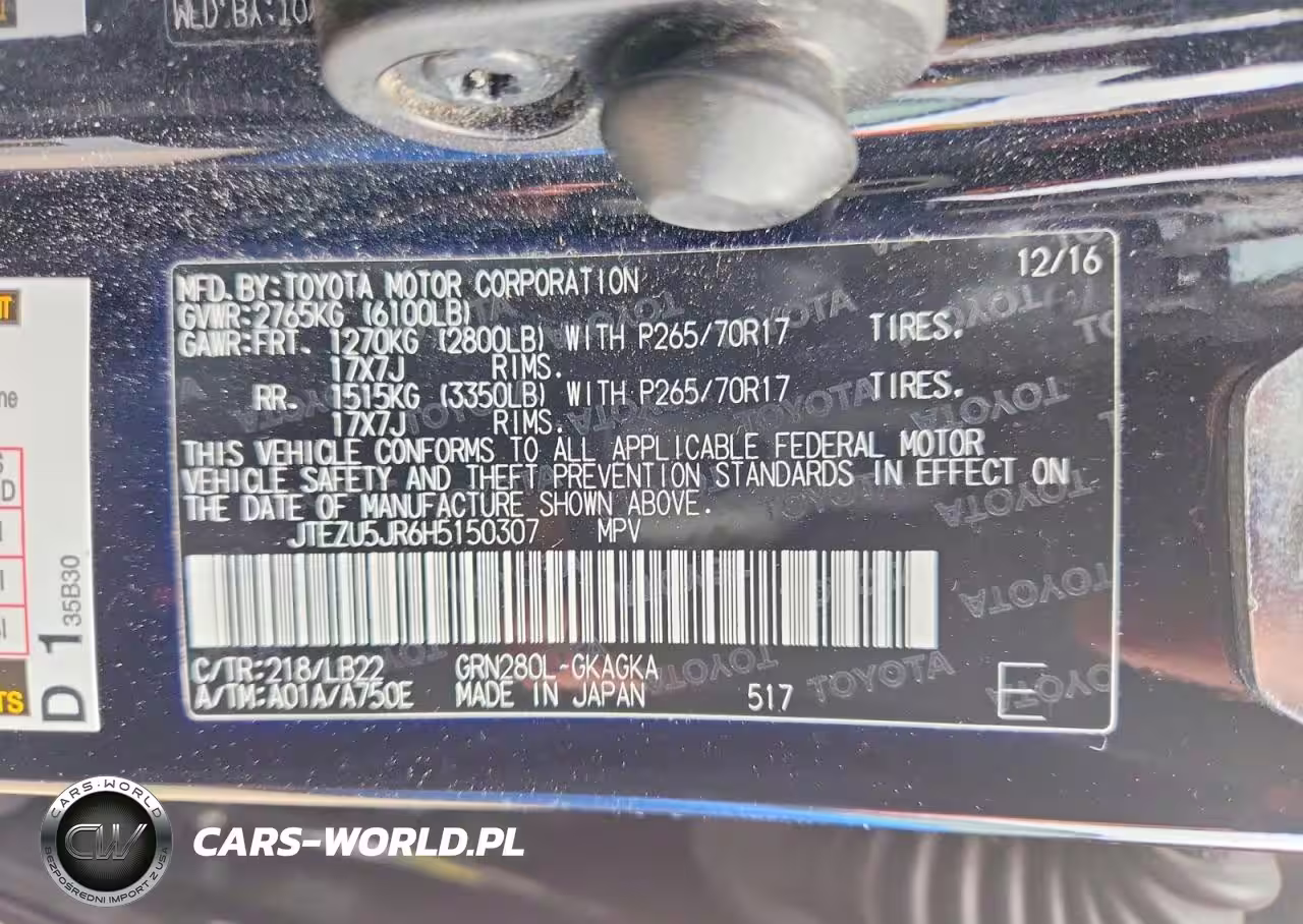 Copart Nr: C-45483016 VIN: JTEZU5JR6H5150307 Port: Savannah, GA