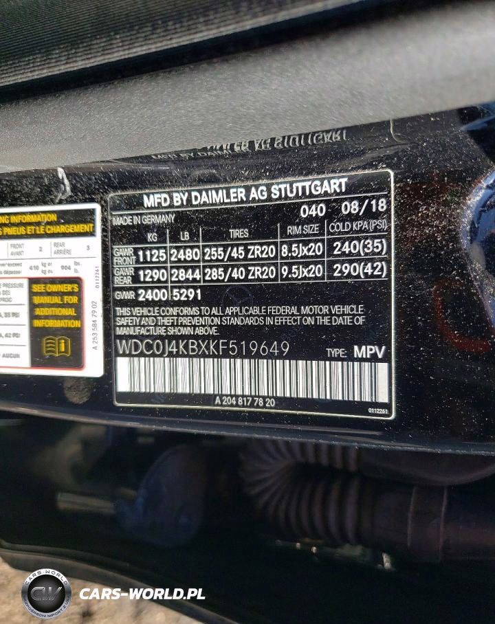Copart Nr: C-45489866 VIN: WDC0J4KBXKF519649 Port: Elizabeth, NJ