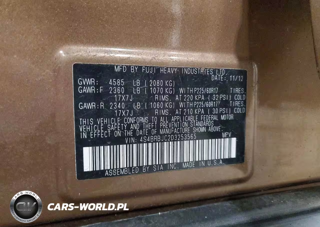 Copart Nr: C-45495406 VIN: 4S4BRBJC2D3253565 Port: Indianapolis, IN