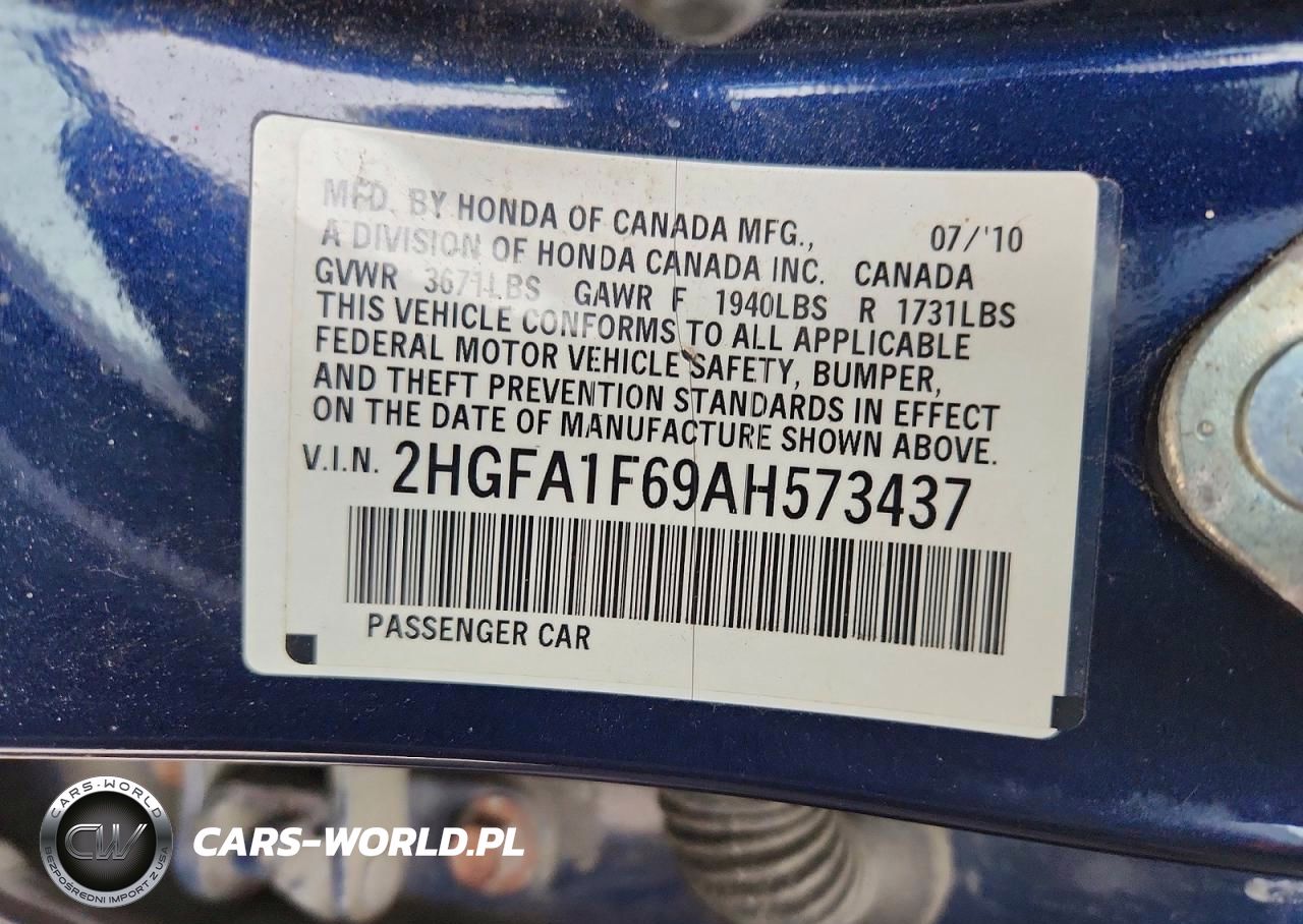 Copart Nr: C-45503576 VIN: 2HGFA1F69AH573437 Port: Elizabeth, NJ