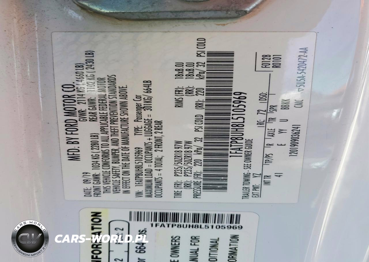 Copart Nr: C-45509776 VIN: 1FATP8UH8L5105969 Port: Houston, TX